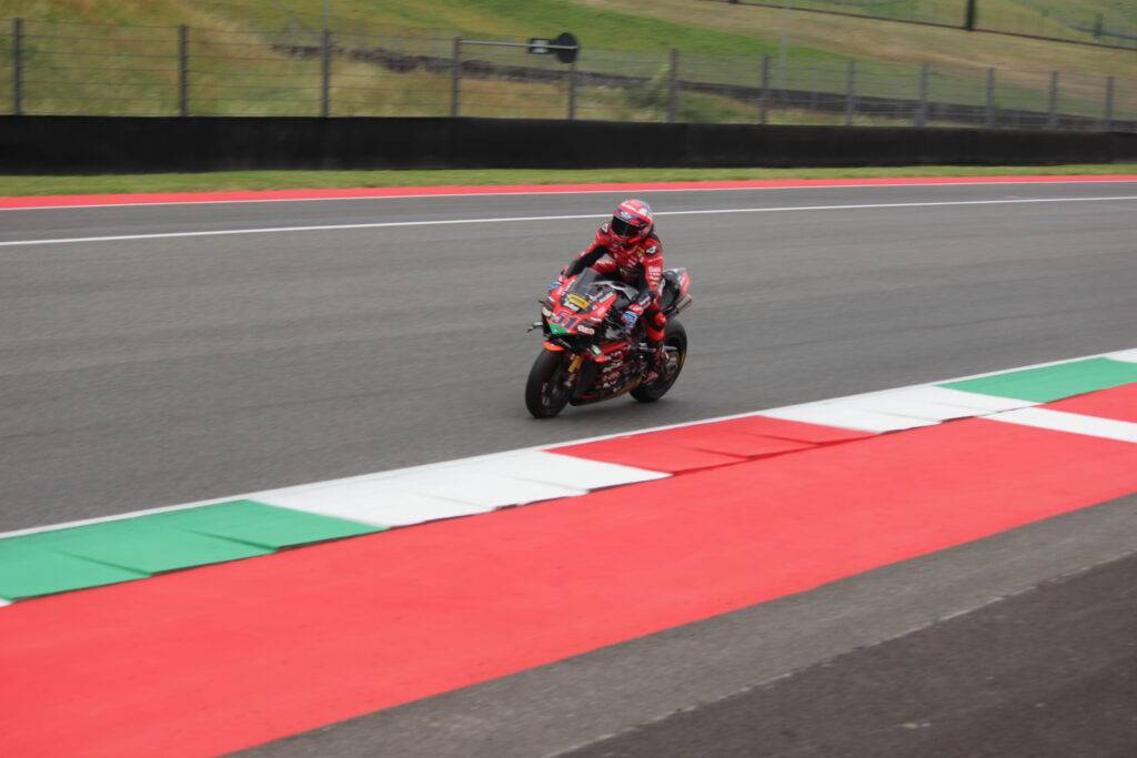 Michele Pirro, poleman e indisturbato dominatore del CIV al Mugello, cade alla Casanova-Savelli. Una gara dettata dal caldo e dove il pilota Ducati non ha mai dato la sensazione di poter scappare definitivamente. Nemmeno dopo la bandiera rossa. Stop forzato dopo una manciata di giri a causa della caduta della Panigale Broncos di Roberto Mercandelli. Non sono bastati i bisticci tra la Yamaha di Alessandro Delbianco e la Aprilia di Samuele Cavalieri per far fuggire Pirro. Nel finale la pressione di DB costringe il numero 52 all’errore, con la sua Panigale V4R che lo scarica sulla ghiaia della Savelli. Un evento che potrebbe potenzialmente riaprire il campionato, in quanto si tratta del primo zero della stagione.