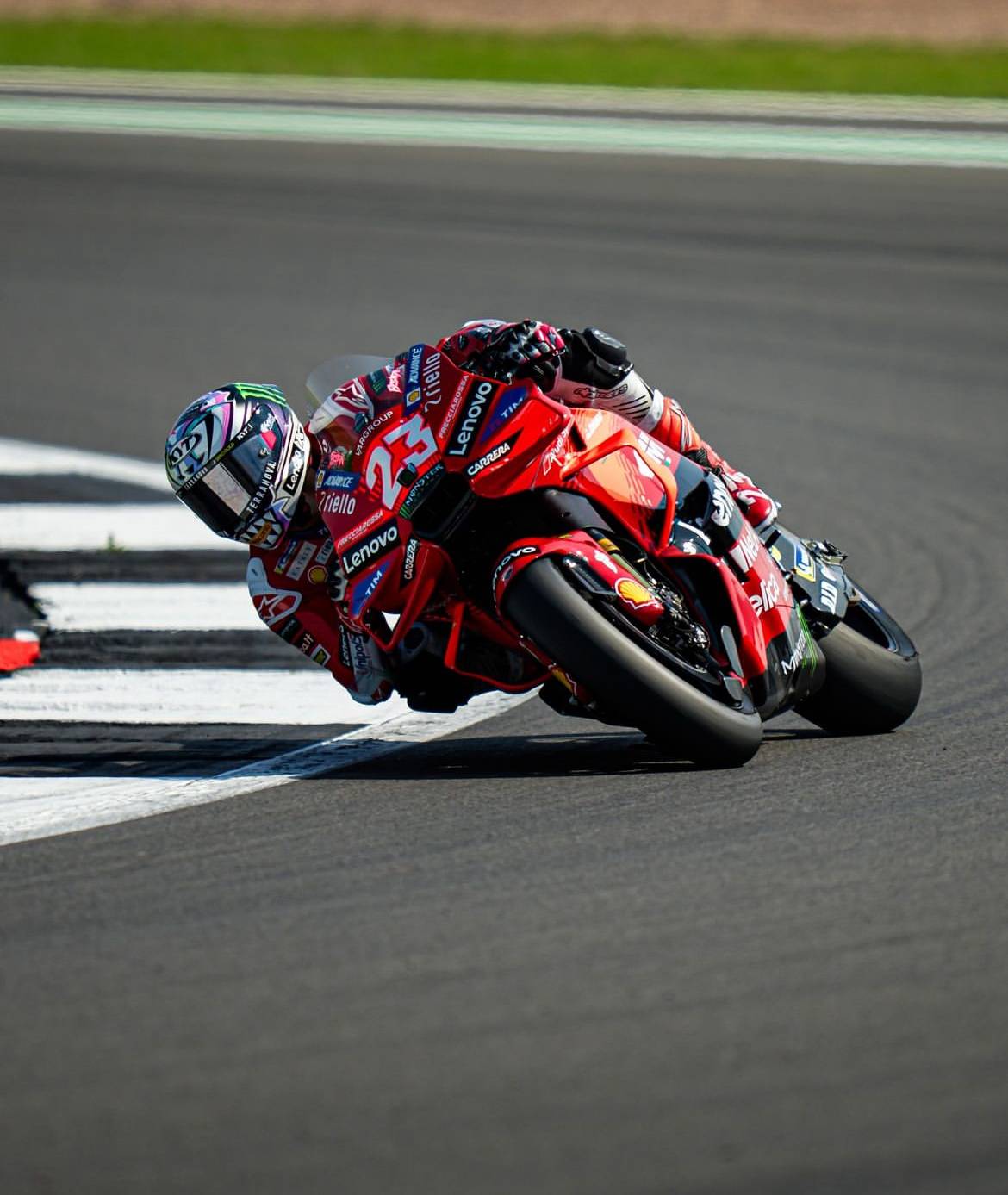 Silverstone è terra rossa, è terra vintage, è terra del numero 33: sì, perché nel Gran Premio corso con le livree storiche, Enea Bastianini sulla Ducati rossa di Capirossi vince e convince e si mette tutti dietro, ancora una volta, dopo la Sprint di ieri. Il trionfo di oggi è l’ennesima conferma della straordinaria capacità del pilota riminese di risalire il gruppo ed essere incredibilmente veloce e fresco nell’ultima fase di gara, dove i suoi avversari invece hanno fatto più fatica. Bestia è stato capace di recuperare dalla quarta posizione e, una volta superato anche Bagnaia terzo, ha rosicchiato terreno a Martin leader, superandolo e involandosi verso la seconda vittoria del weekend. Quello che ha fatto questo fine settimana è una meraviglia: due trionfi che fanno bene al morale e sono l’ennesima dimostrazione della sua velocità, che cresce sempre di più a gara in corso.