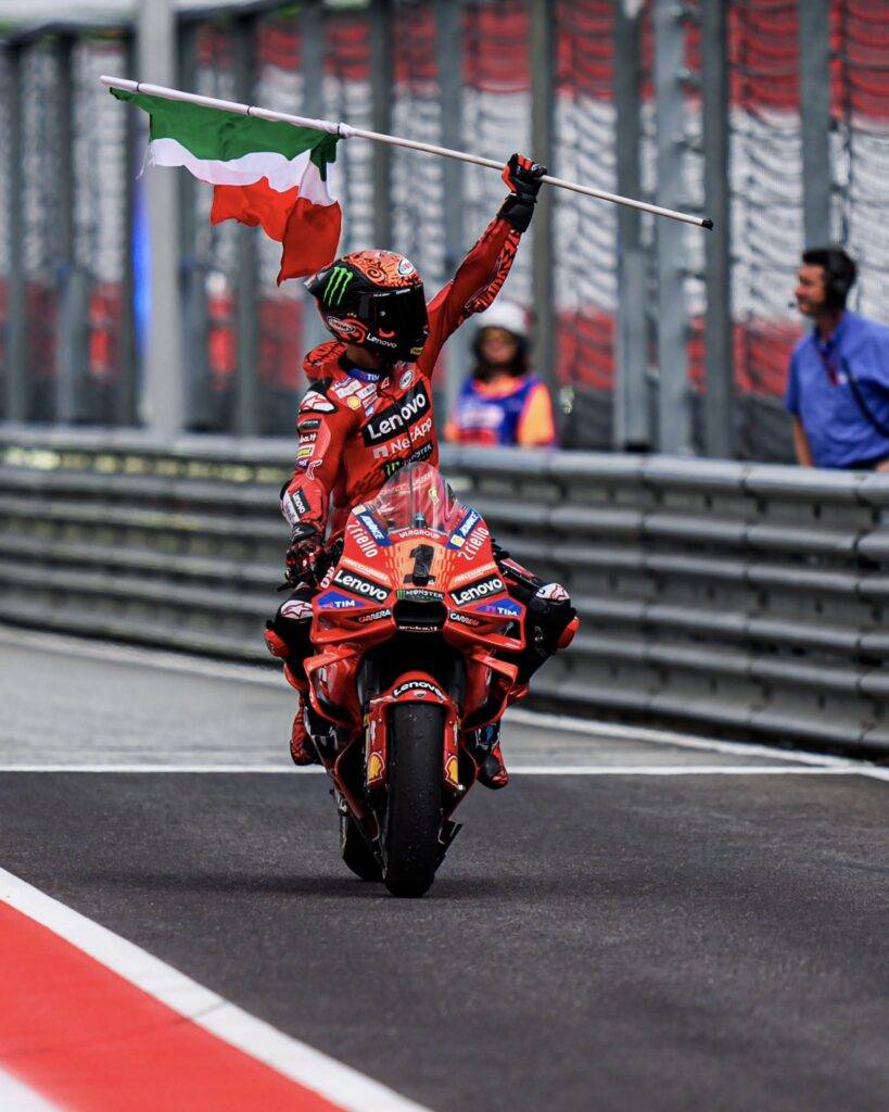 Pecco Bagnaia vince al Red Bull Ring per la terza volta di fila (dopo il 2022 e il 2023) e prende la leadership del mondiale per 5 punti da Jorge Martin che in gara non può nulla. 25sima vittoria in classe regina ed entra di diritto nella top10 dei piloti più vincenti del motomondiale