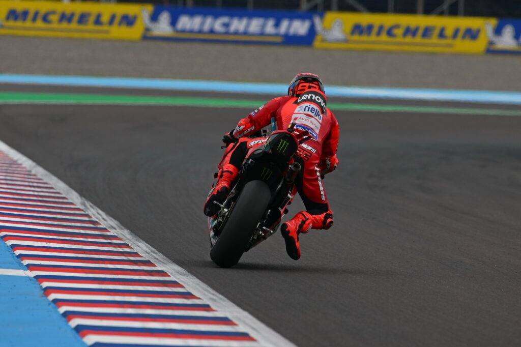 “Dalla prima sessione di libere alla Practice abbiamo fatto un passo avanti per essere piรน costanti, perchรฉ quando non รจ perfetta l’elettronica si fa fatica. Domani cercheremo di fare un altro passo piรน avanti sempre in questa cosa, non per essere piรน veloci ma costanti. Le qualifiche saranno come sempre fondamentali. Un giro secchissimo e tutti vanno molto veloce. Sarร importante partire dalla prima fila perchรฉ ti cambia tutta la gara. Ho visto un Alex e un Bezzecchi molto forti, Di Giannantonio sarร lรฌ, per me anche Bagnaia domani sarร lรฌ. Oggi รจ caduto, ma sarebbe stato sicuramente nei primi 5.”