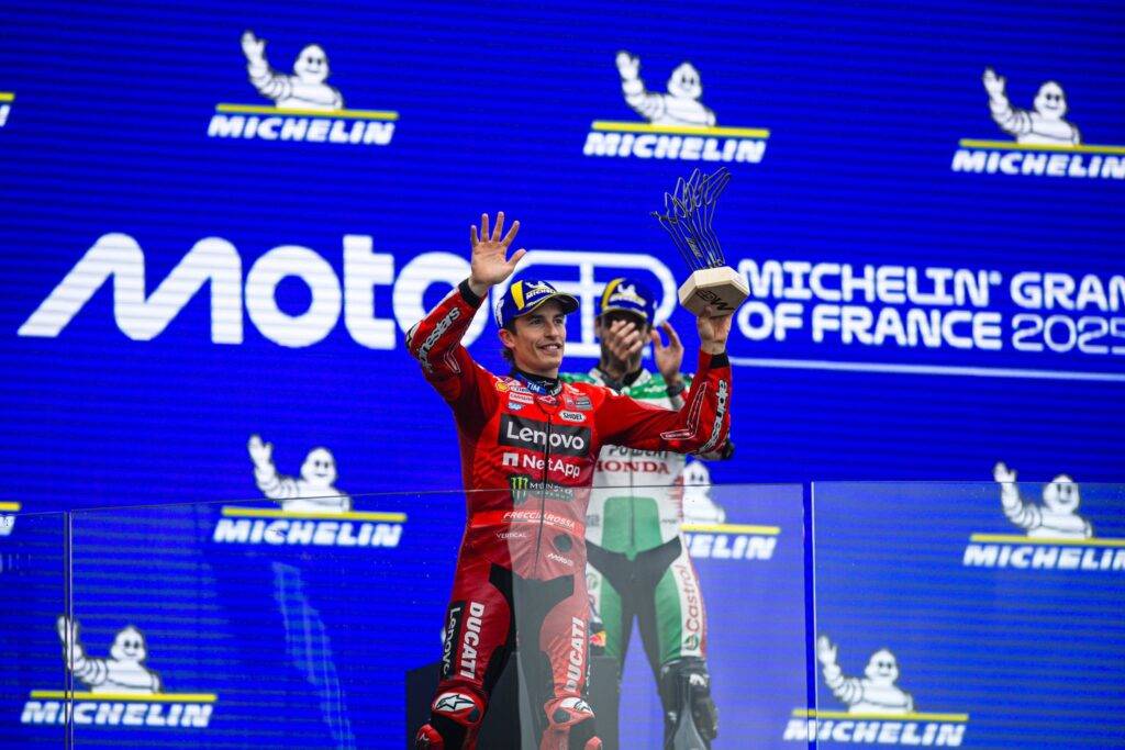Marc Marquez con il secondo posto di Le Mans esce come nuovo leader del mondiale con 22 punti su Alex Marquez e 51 su Pecco Bagnaia: “Gara strana. Non ho spinto per prendere Zarco perché non volevo prendere rischi.” E sulla Ducati…