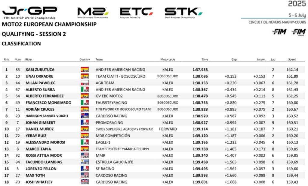Moto2, i risultati completi delle qualifiche a Magny-Cours